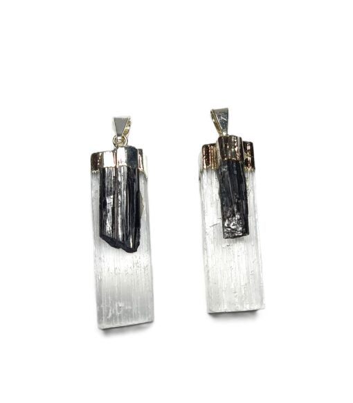 Este Dije de Selenita con Turmalina Negra combina la pureza luminosa de la selenita con la fuerza protectora de la turmalina negra, creando un amuleto ideal para quienes buscan limpiar y proteger su energía a diario. La selenita eleva y purifica, mientras que la turmalina negra absorbe y transfiere energías negativas, estabilizando el aura y enraizando el cuerpo.