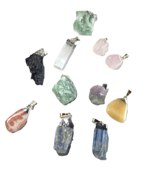 Nuestros dijes de Selenita, Cuarzo Verde, Calcita Amarilla, Rodocrosita y Sangre de Dragón son amuletos cargados de energías únicas que te acompañan para equilibrar cuerpo, mente y espíritu. Desde la purificación y conexión espiritual de la Selenita, la sanación y renovación del Cuarzo Verde, la claridad y motivación de la Calcita Amarilla, el amor propio y sanación emocional de la Rodocrosita, hasta la fuerza y protección poderosa de la Sangre de Dragón, cada pieza es un aliado personal para transformar tu energía y potenciar tu bienestar.