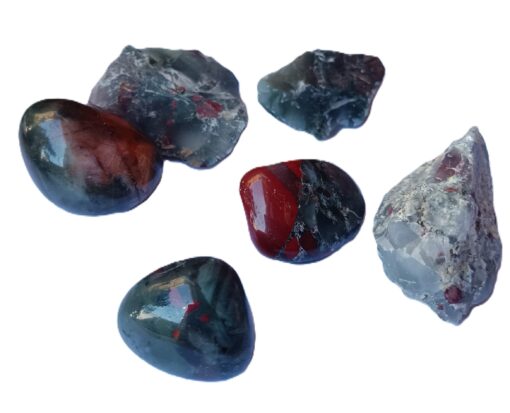 La piedra Sangre de Dragón es un cristal profundamente conectado con la tierra y el poder ancestral. Su vibrante color verde con vetas rojizas representa la fusión entre la vida (verde) y la fuerza vital (rojo), evocando la sangre mágica de los dragones míticos.